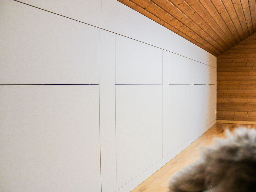 Im gesamten Einfamilienhaus wurden von uns passgenaue Einbauschränke umgesetzt, die sich dezent und funktional in die Räume einfügen.